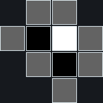 The light-gray squares are where a new piece can be placed.