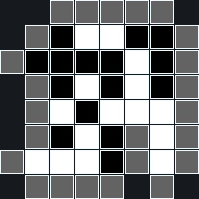 It's white's turn to move a piece. Some pieces are slightly darker to indicate they cannot be moved (because doing so would isolate other pieces).